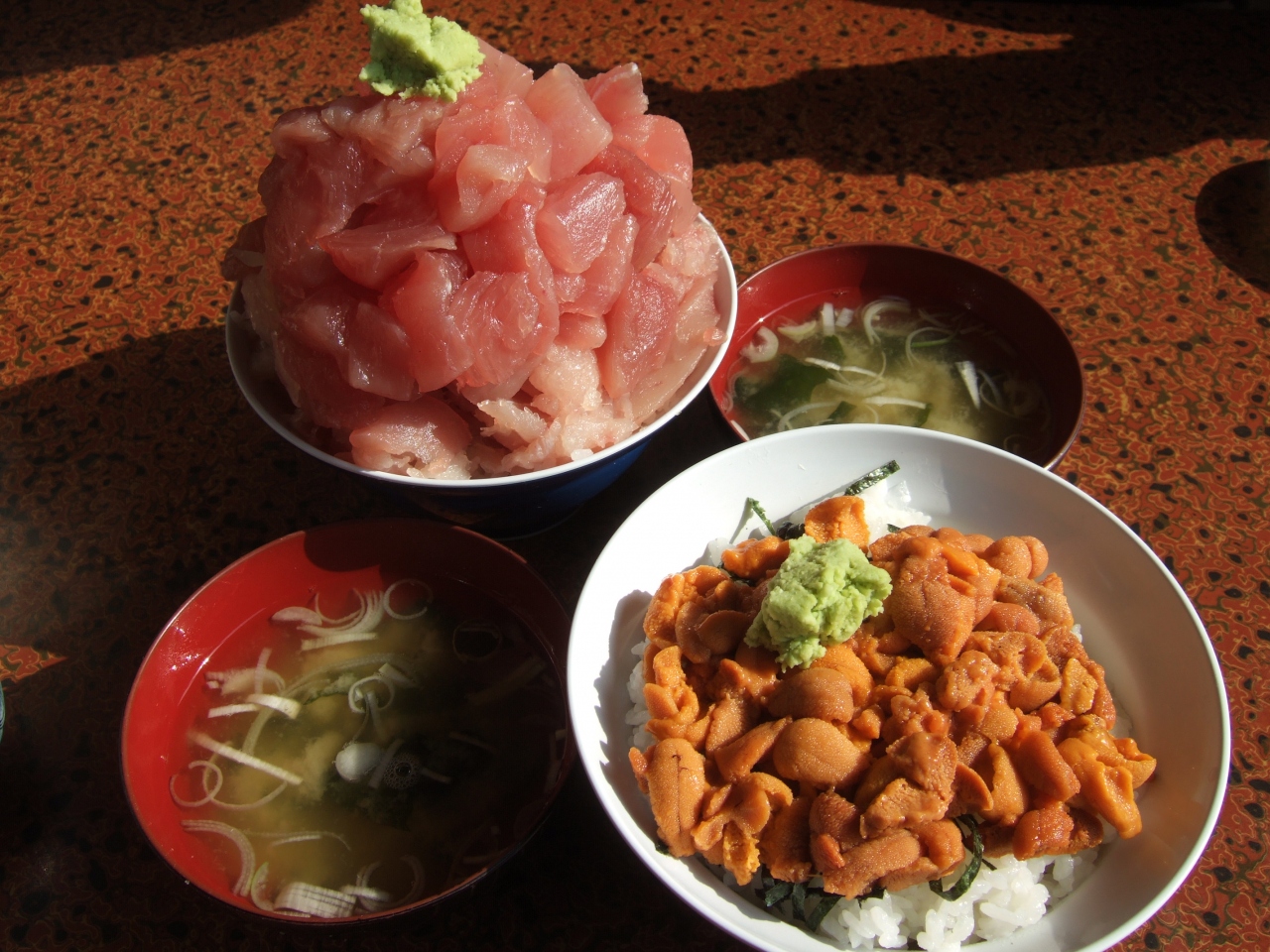 2人でマグロ丼とうに丼を注文しました。
