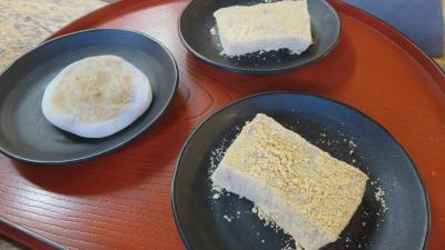 お店の奥のスペースでお茶が頂けるのでお餅を購入して頂きました。