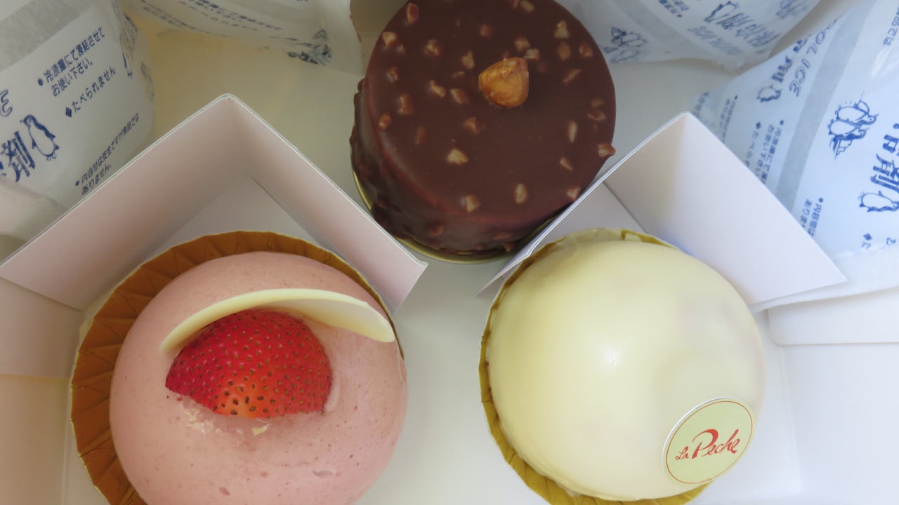 並んでいるケーキの中でべリー系のドーム型やマンゴー味のケーキを購入。