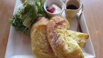 ふわふわちぎりぱんorフレンチトーストorサンドイッチの内からチョイス。今回はフレンチトーストにしました。サラダとヨーグルトも付いています。フレンチトーストはぷるんとしていて、シロップをかけると絶品でした。- 旅行時期