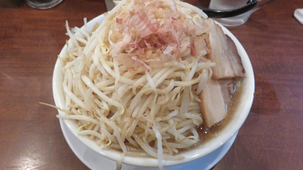 来ると麺の1.5倍ほどのもやしがたっぷりとのっていました。