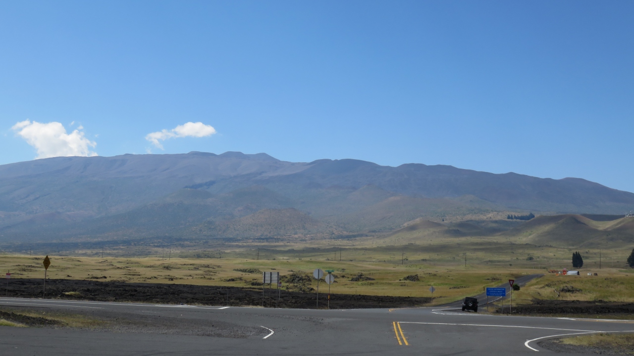 両側は見通しがよく、マウナケアに上がる交差点の所にはプゥフルフルという丘があり