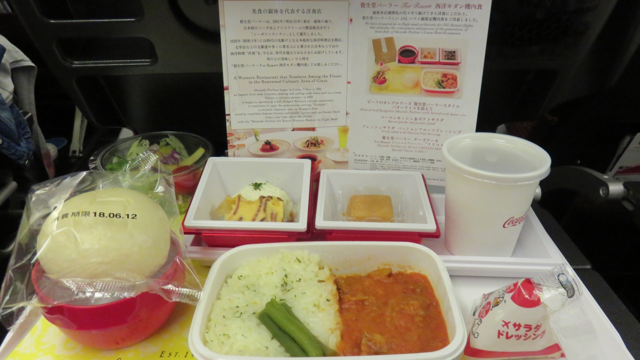 食事は軽食で、あと1食は袋に入ったパンケーキなどの簡単な物でした。
