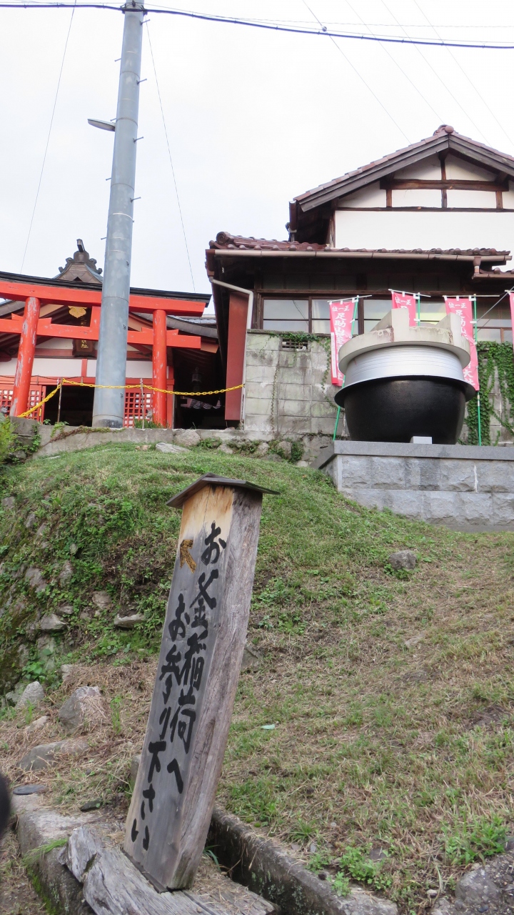 お稲荷さんの鳥居の横には大きなお釜がありました。
