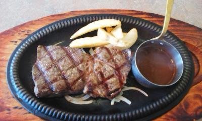 サラダバーは野菜の種類が少なかったので付けずにステーキを注文しました。