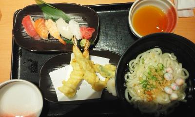 沖田総司だったか、うどんと天ぷら&お寿司のランチを注文。