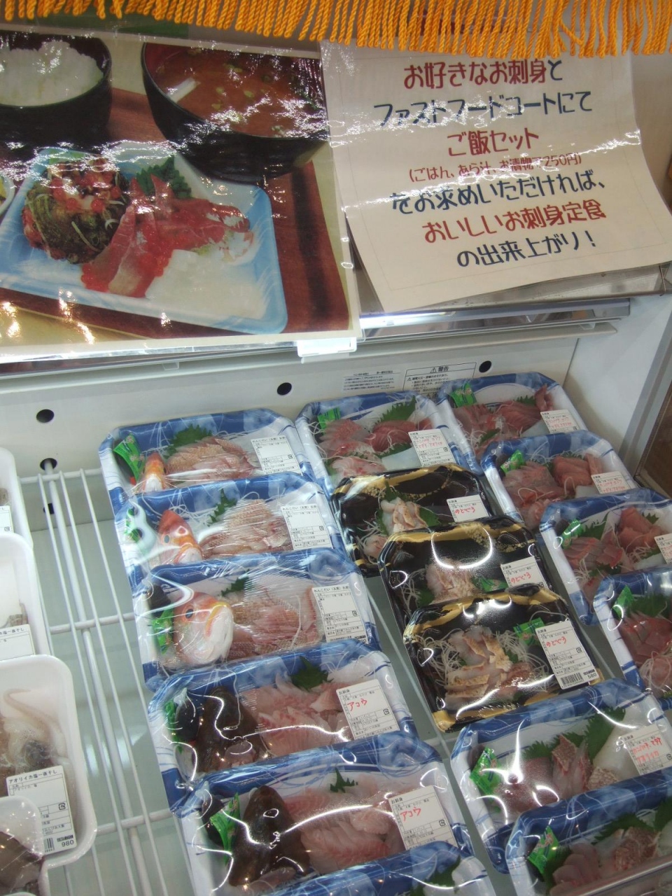 海沿いにあり、売店にはアオリイカやお作りの盛り合わせなどが