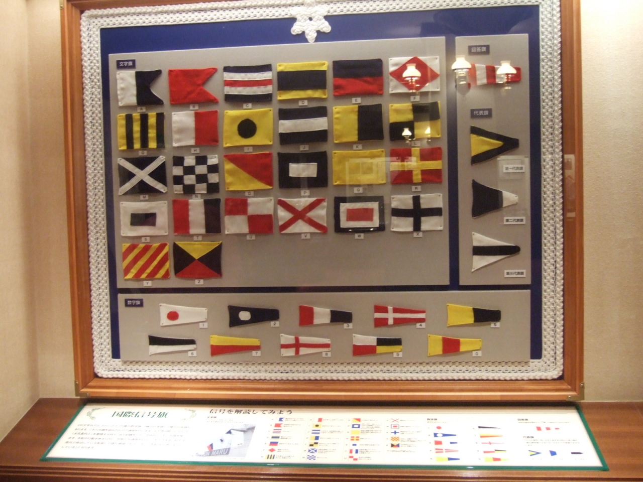 展示は旗の説明や紐のくくり方、豪華客船の種類などです。