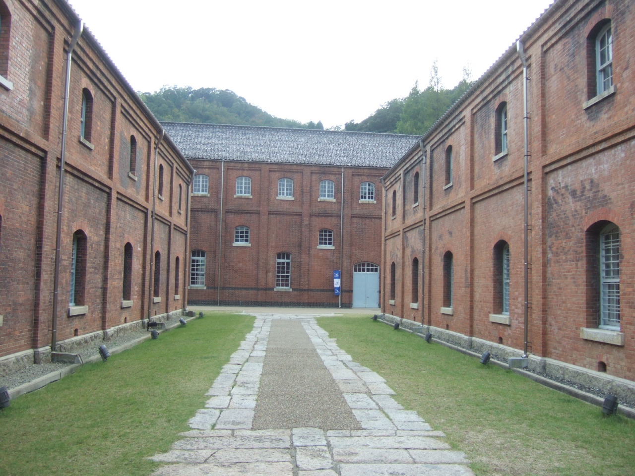 赤レンガパーク内にレンガ造りの建物が並んでいます。