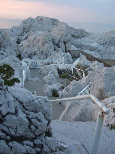 その建物の奥に階段があり、岩の上にある展望台まで行けます。