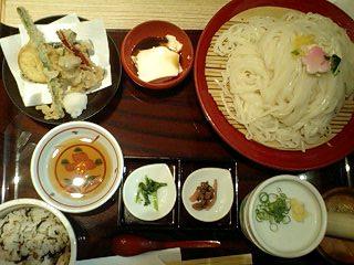 今回注文したのは野菜の天ぷらとひじきご飯とざるうどんとデザートに