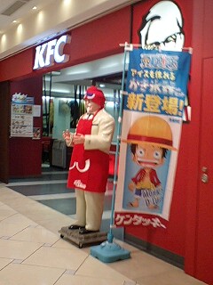 入り口にはカーネルサンダーさんがなにやら変装(?)してお待ちかねの様子。
