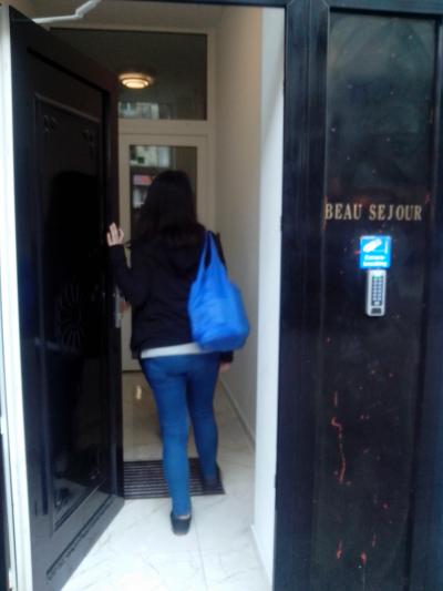 部屋の鍵は、管理人が常駐していないようで、予約するとメールで暗証番号が送られてきて、通りに面したドア横のボタンを押して入り、そこにあるメールボックスを開け、そこにエントランスと部屋に入るための共通キーが入れてあります。