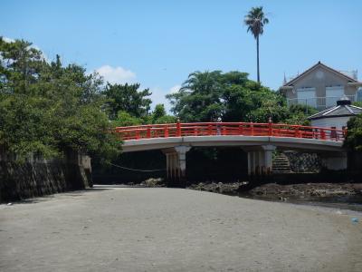 神社の入り口を出て曲がるとある、「みそぎ橋」。この橋を渡って森戸海岸へ...