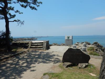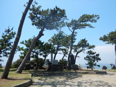 駐車場に戻って、駐車場から歩いて下の海辺に行きます。立派な松がたくさん...