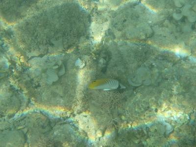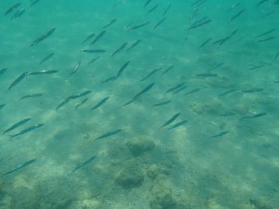 家族でシュノーケルに2度行きました。遠浅の岩場が続き、シュノーケルには最適です。昨年は、ヤガラ、カゴカキダイ、チョウチョウウオなどを見ることができ、とても楽しかったです。今年はきびなごの群れ、烏賊にあうことができました。きびなごの群れはとても綺麗でしたよ。