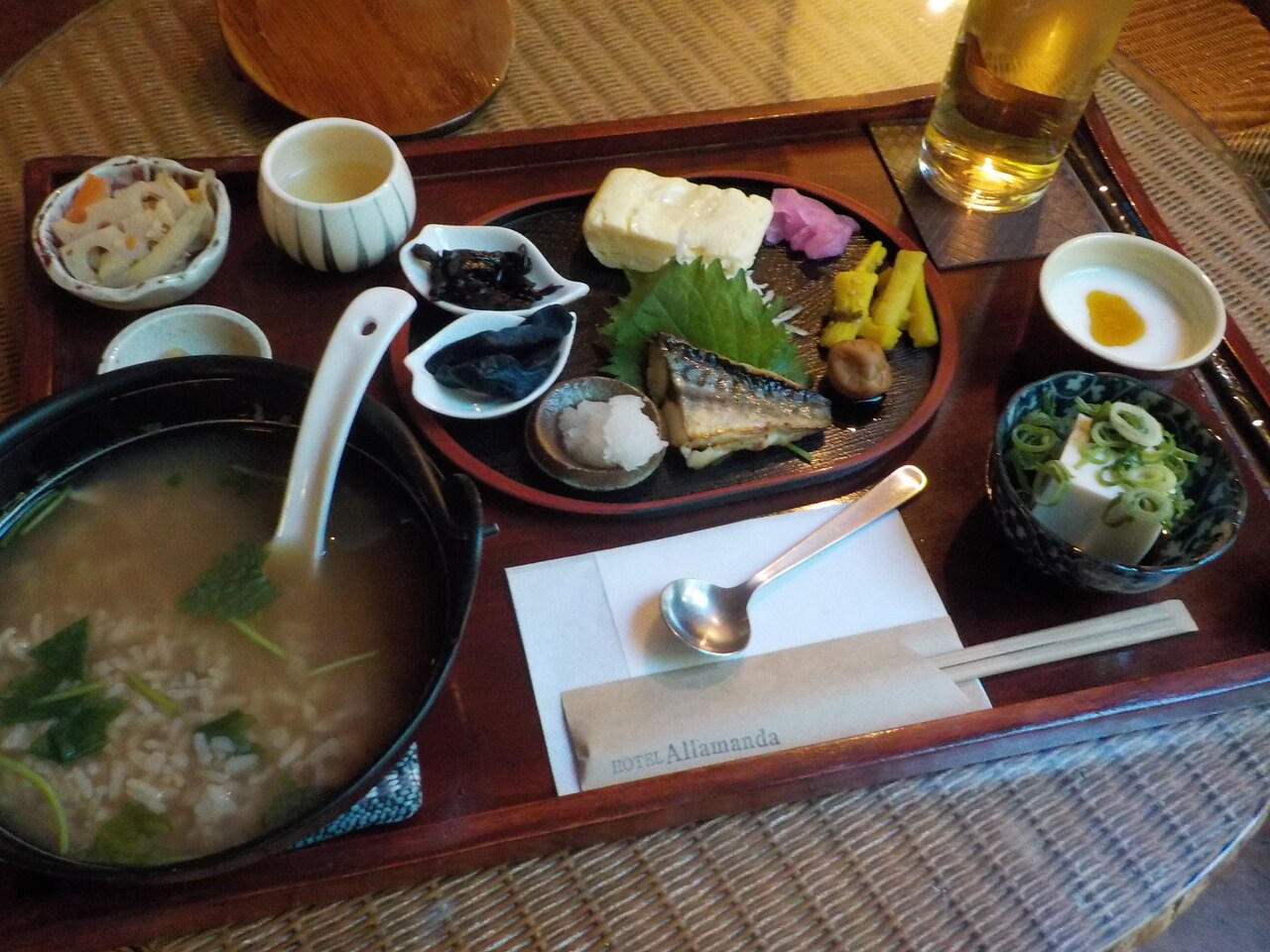 さらに、夕食、朝食ともに、部屋食なんです!名物のトマト鍋、ボリュームもあるし、メチャ美味しかった。朝も奈良らしく茶粥。