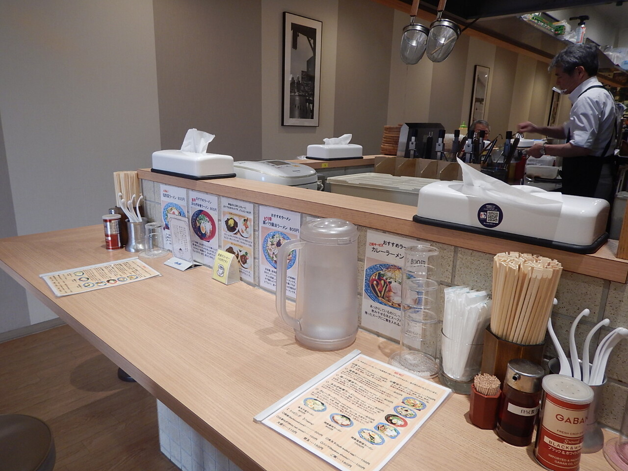 お一人さまが多いのか、窓側の席は、カウンター席のような作りですが、横との間隔が開いているので、コロナ禍で最適な配置になってます。