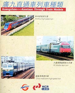 1日7往復ある香港−広州間の列車には、「新時速」「九廣通」「準高速」の3つの列車種別があり、中国、香港それぞれの車両が使われている。