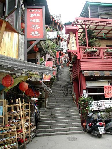 階段で山の中腹にある商店街に上ってお買いものするって感じです。