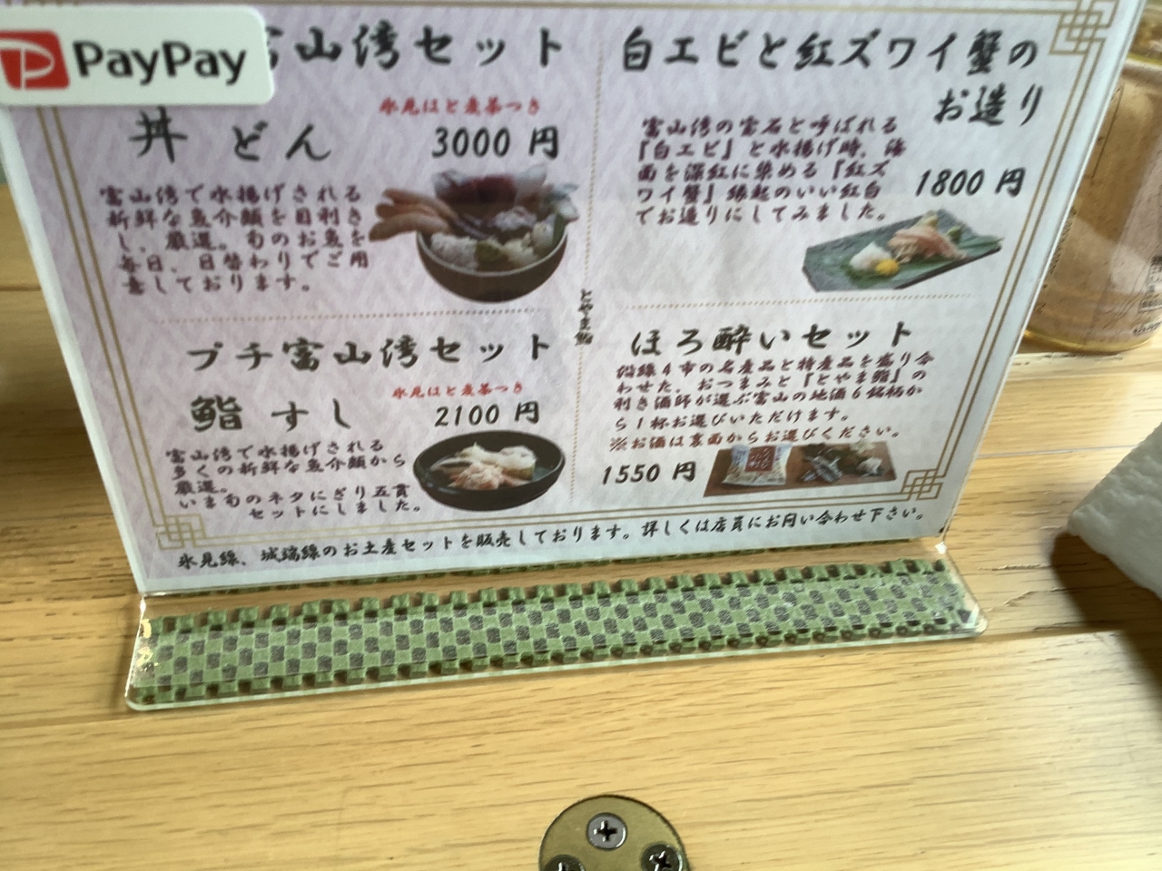 富山湾の新鮮な海の幸を車内で楽しめます。