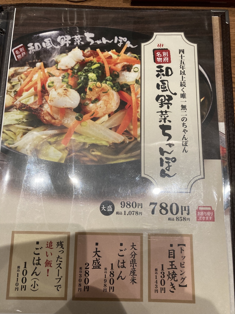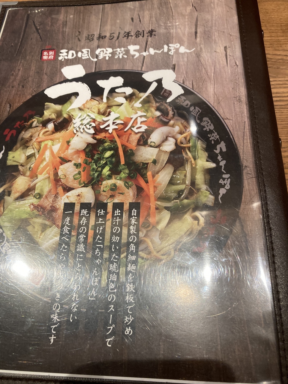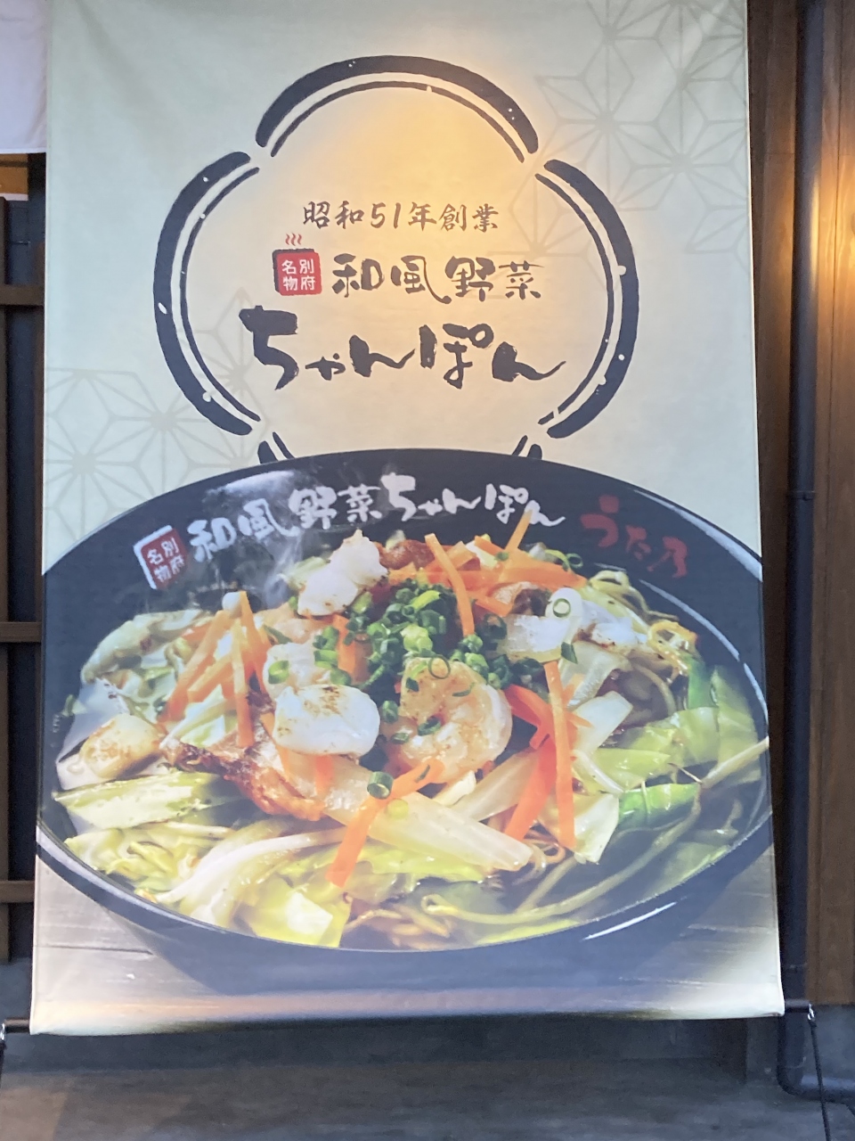 とも違う別府温泉のちゃんぽんは、鉄板焼きの鉄板で野菜・肉などと麺を焼きそばみたいに炒めてカツオ・鶏・豚