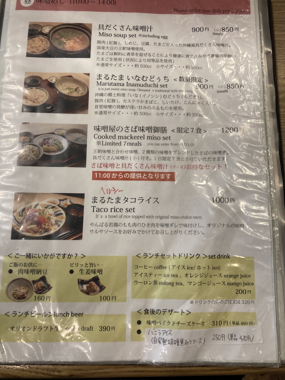今まで沖縄に100回以上通っている中で沖縄の街中の定食屋さんの「味噌汁(600円前後)」を知っているためは個人的には味噌汁以外のメニューをお勧めしたいです。