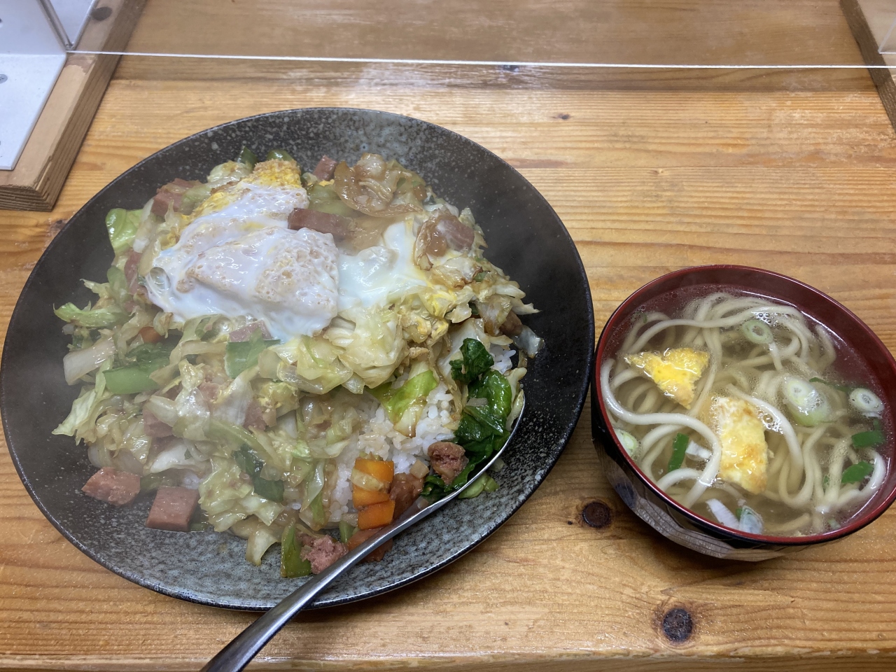 ※沖縄でちゃんぽんはご飯の上に野菜を炒めて卵でとじたものがのっかっています。