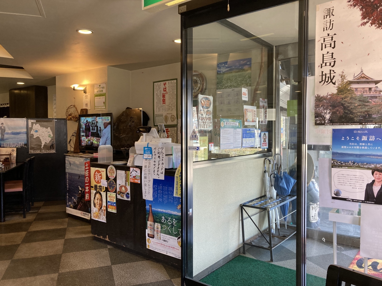 場所は諏訪湖畔周遊道路に面していて上諏訪諏訪駅からは少し距離があります。