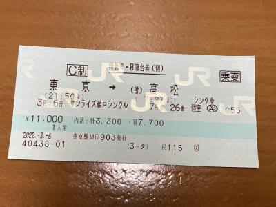 以前から乗って見たかったサンライズ瀬戸の予約が取れたため東京から高松まで乗車してきました。