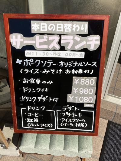 それ以外の飲食店は少し歩きそうだったためこちらの日替わりランチ「ポークソテー」を選択しました。- 旅行時期