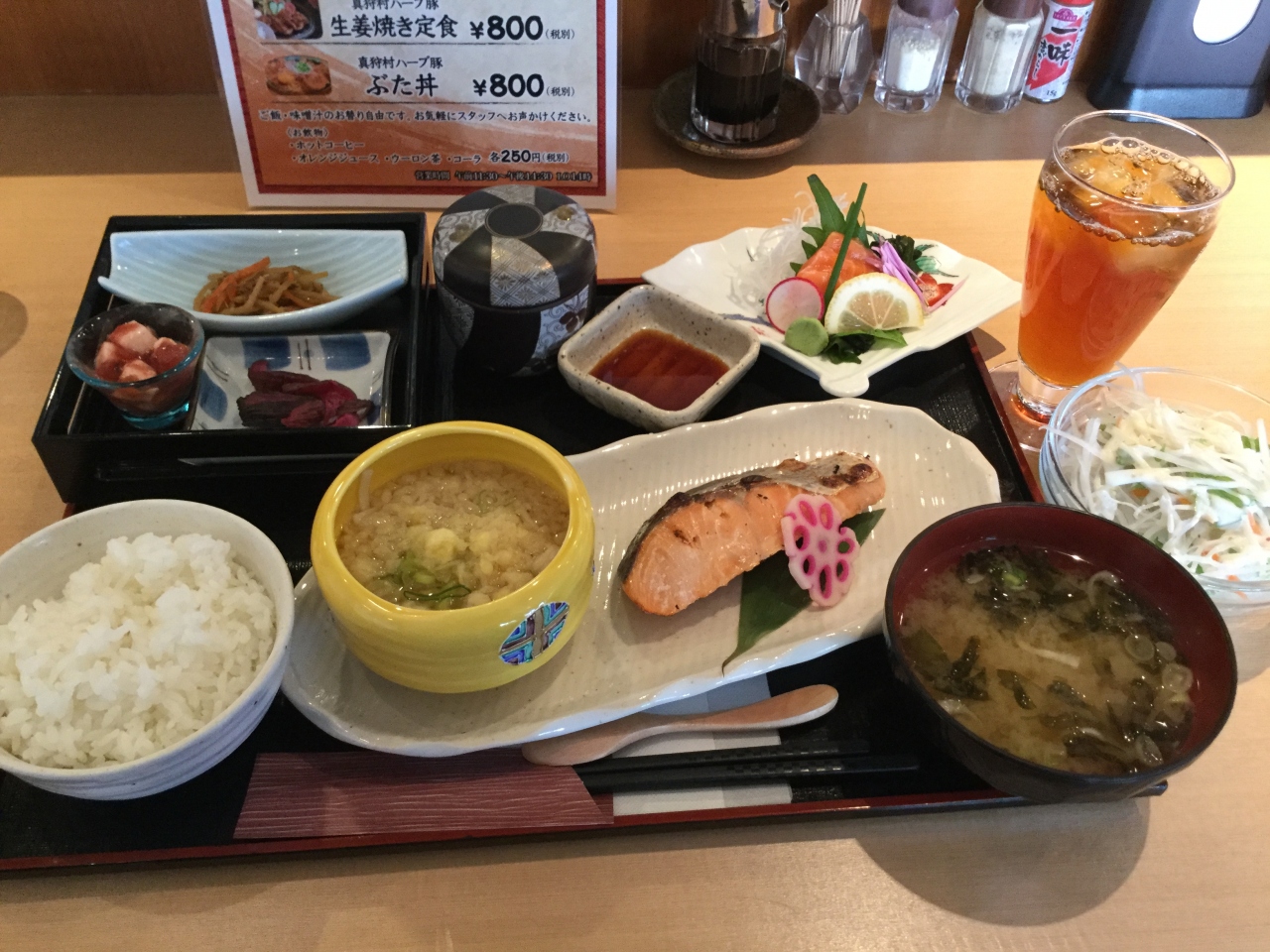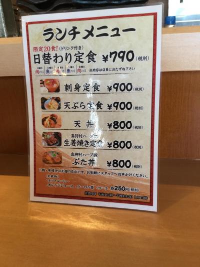 北海道出張で千歳市内に宿泊した際にランチで利用しました。食べたのは日替わり定食で20食限定でしたが運良く残っていました。この日の日替定わり食鮭尽くしで鮭刺身と焼き鮭がありました。日替わり定食だけがドリンク付きの値段です。メニュー税別価格で別途消費税がかかります。