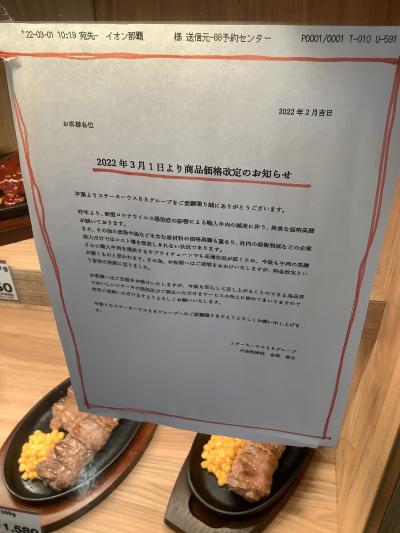 やっぱりステーキも値段は据置きでしたが肉のグラム数が減っていました。