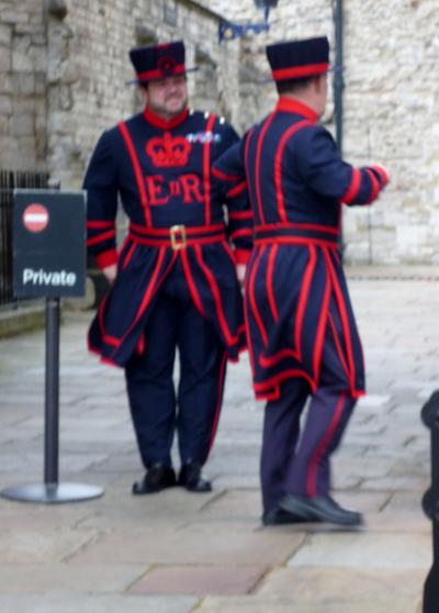 ビーフィーターは気軽に一緒に撮影に応じてくれます。警備の兵隊が全く動かないのを見るのも楽しい。