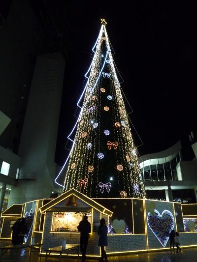今回は、新梅田シティの空中庭園の下に飾られたクリスマスツリーを観に行きました。