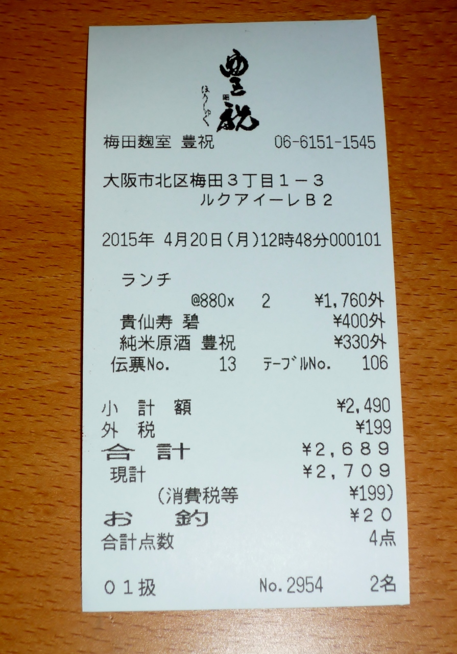 カクテル2杯頼んだので、1人あたり7500円くらいでした。