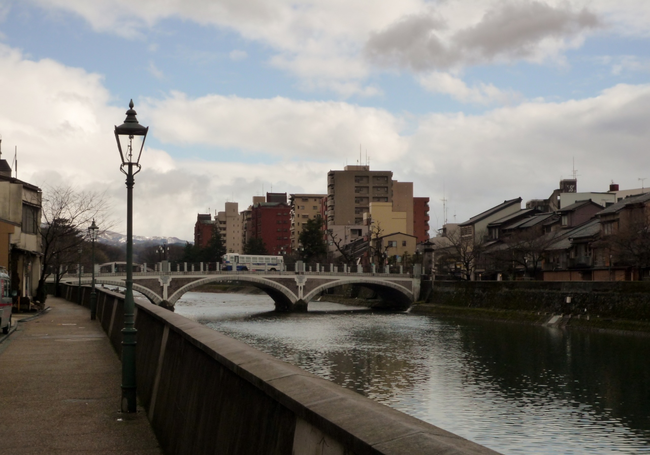 浅野川にかかる橋で、ひがし茶屋街から主計町茶屋街へ行くのに便利です。