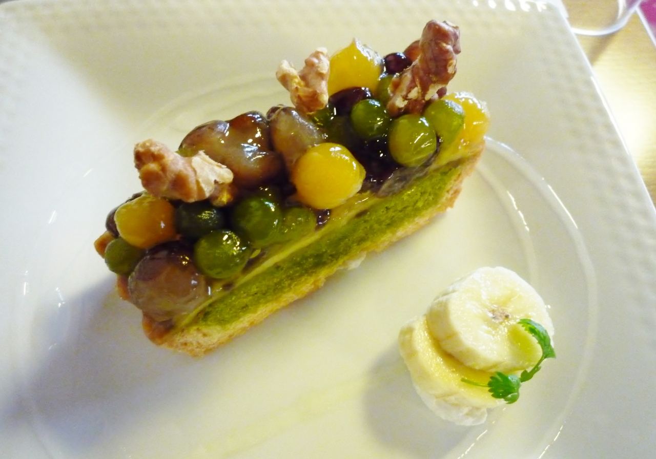 タルトは和風で国産のひよこ豆やえんどう、大豆がぎっしりのっています。