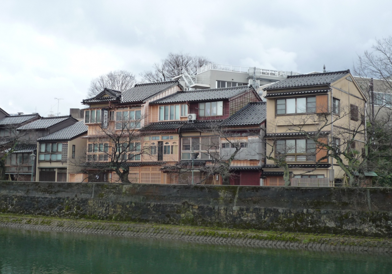 金沢の三大茶屋街の一つです。読み方は主計町(かずえまち)です。
