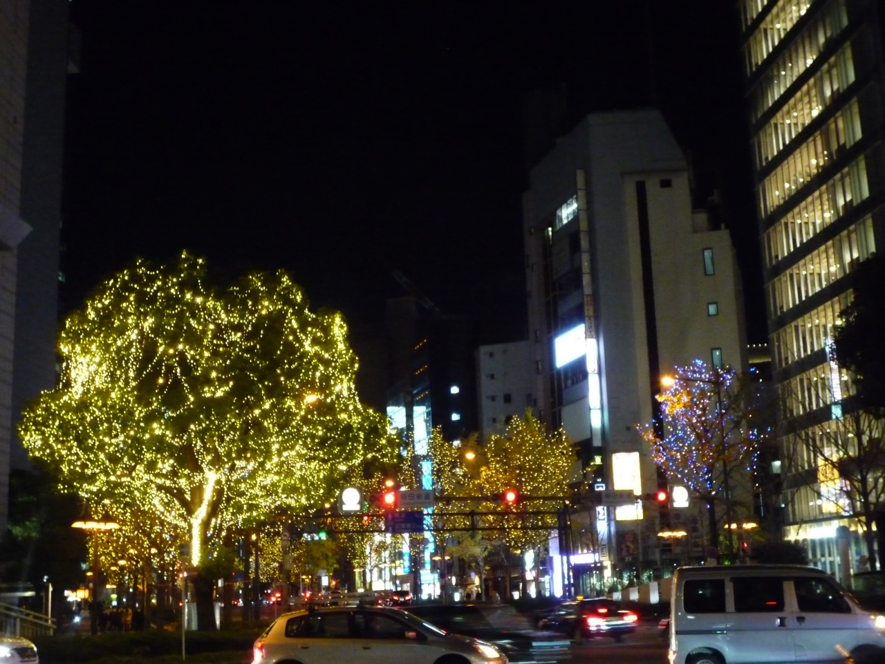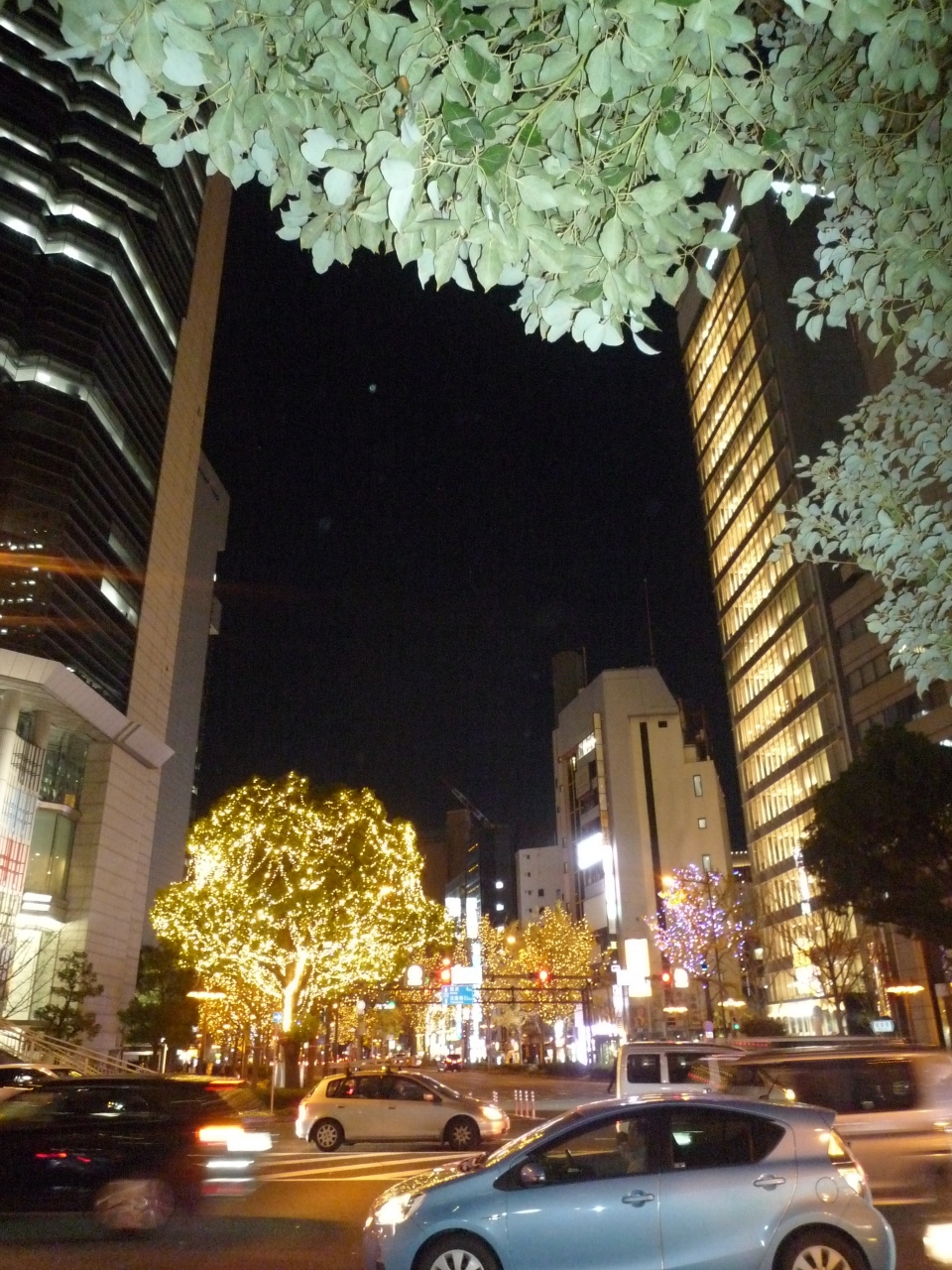 大阪キタとミナミでは、クリスマスツリーがあちこちに飾られ、