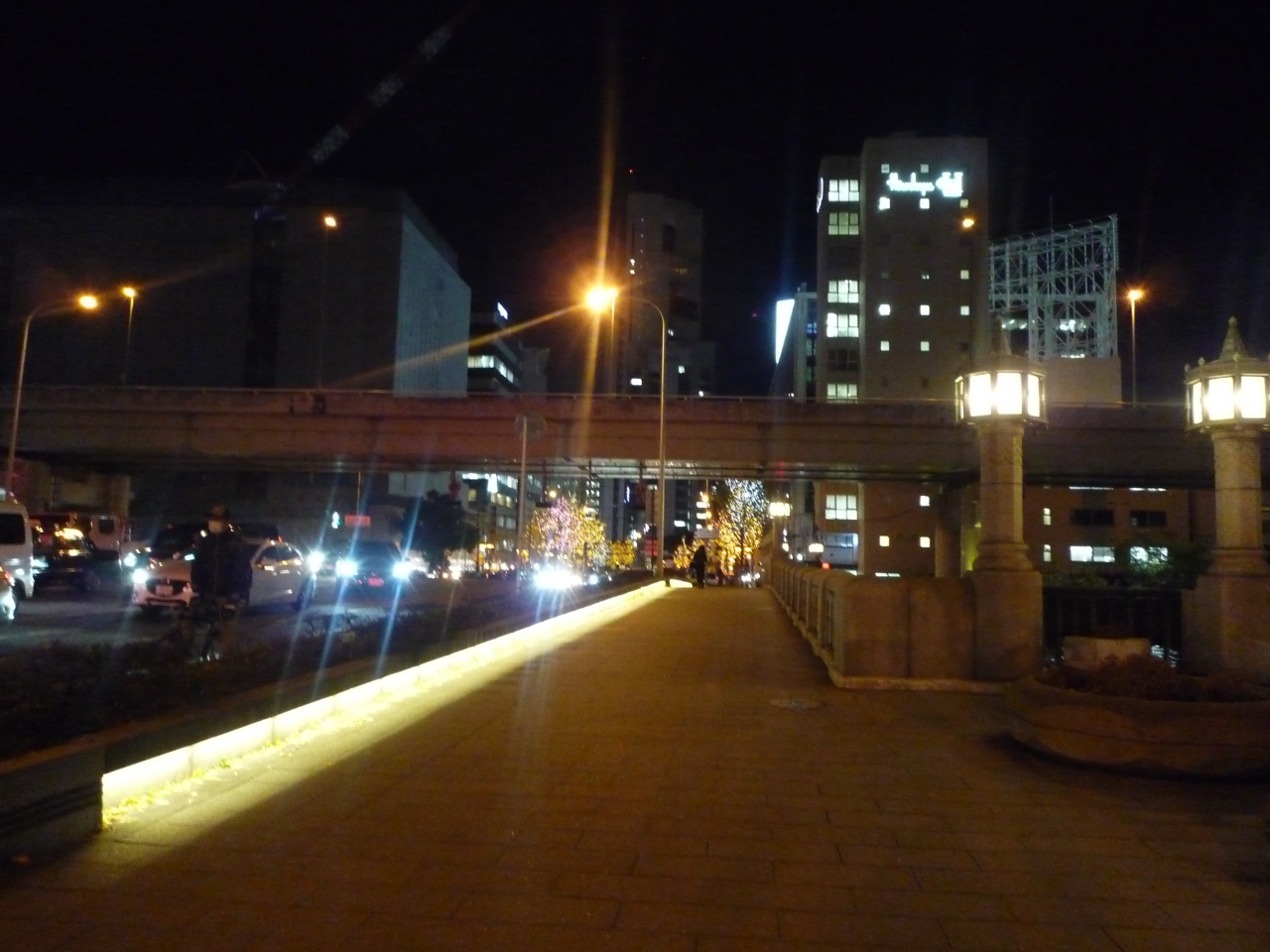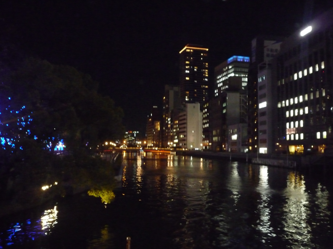 夜になると堂島川に架かる橋はライトアップされて綺麗でした。- 旅行時期
