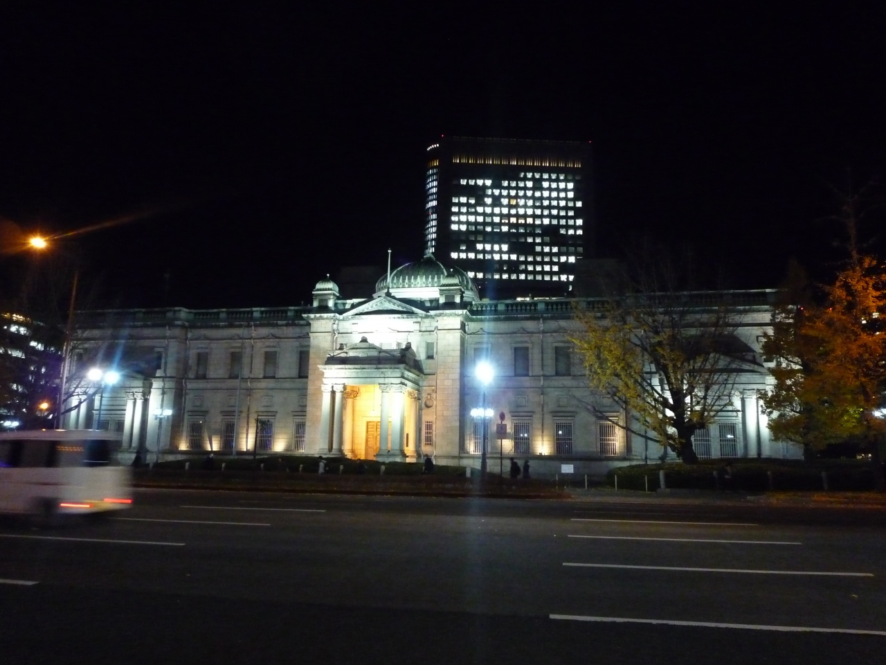 日本銀行の大阪支店は大阪市役所の御堂筋を挟んで向かいにあります。