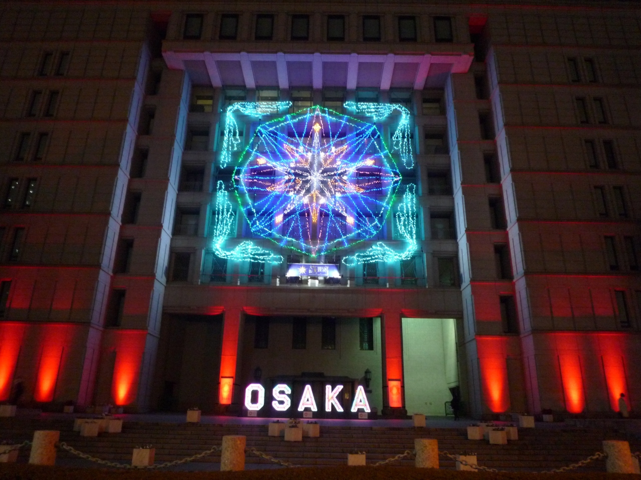 冬は大阪光の饗宴で周辺の建物はライトアップされています。
