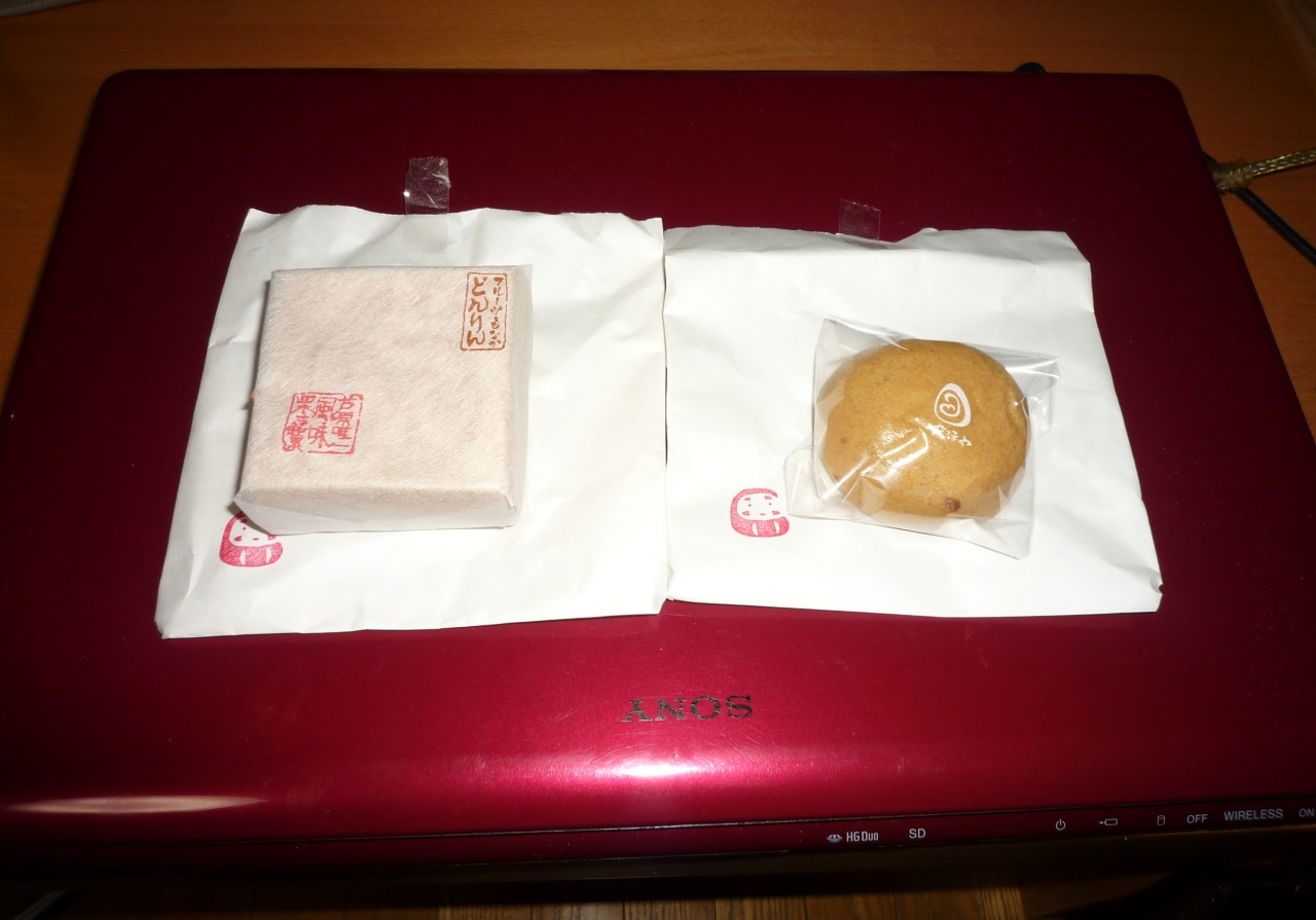 右は温泉まんじゅう、左は「どんりん」という御菓子です。
