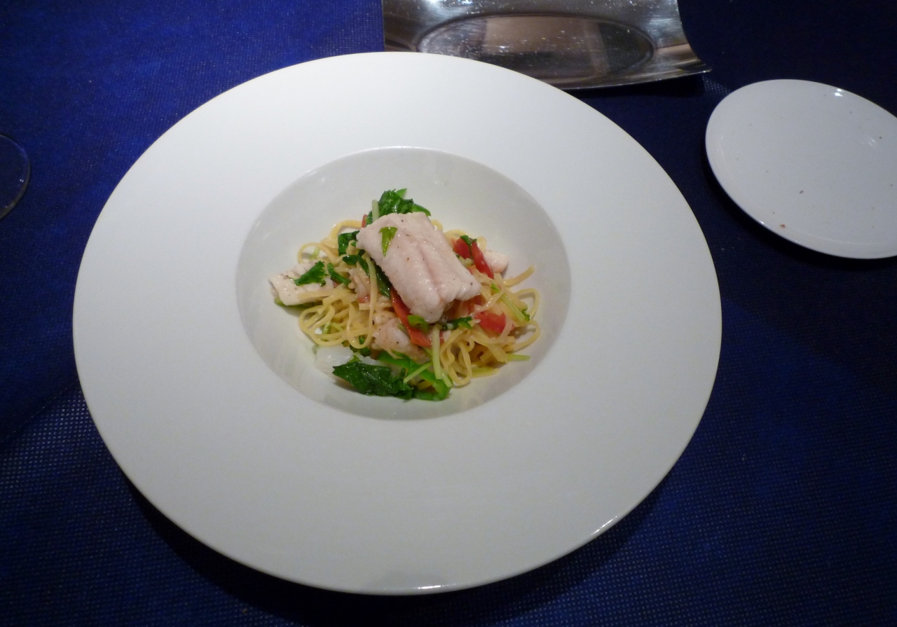 「ワタリガニのクリームソース」と、「ガーリックバターのバケット」。