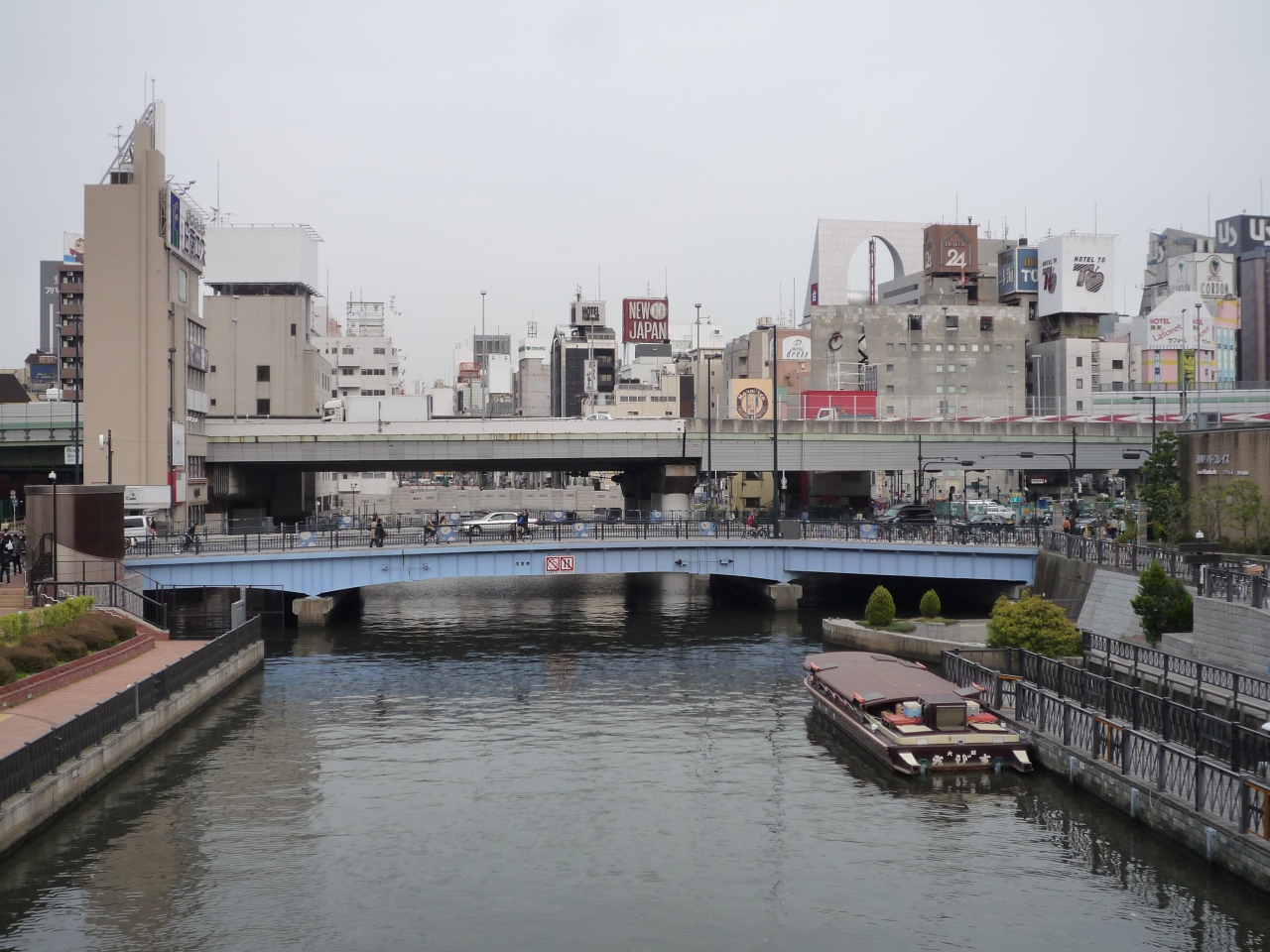 道頓堀川の橋は破壊されています。