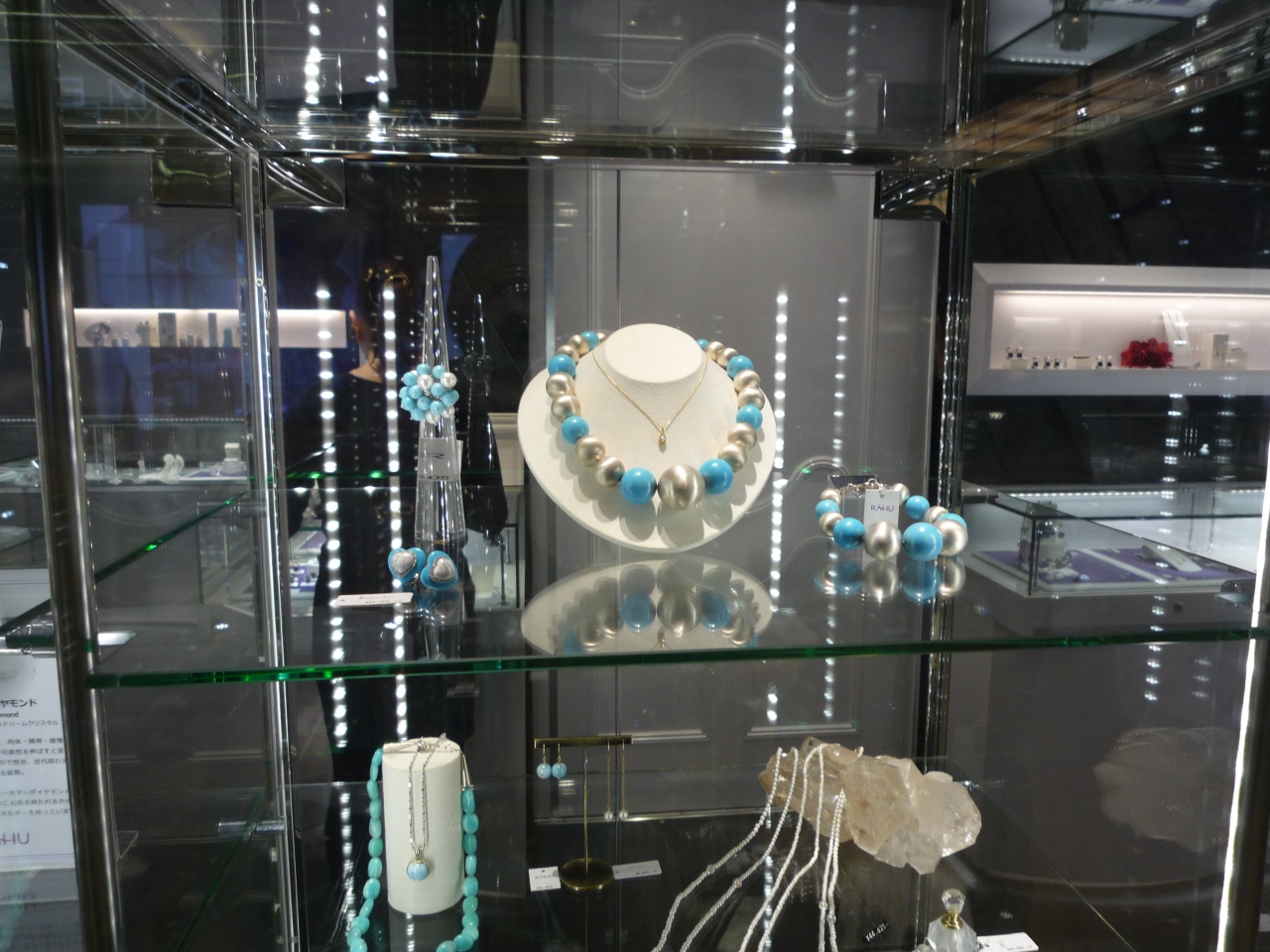 これからの季節にぴったりなターコイズのアクセサリーが飾ってありました。