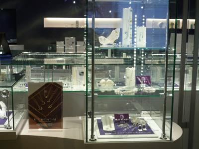 すっきりとした店内にはブライダル用のジュエリーが揃っています。