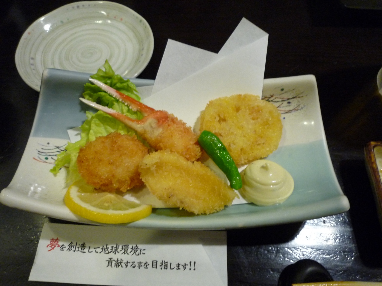揚げ物(カニ爪、ホタテ、イカ、レンコンのフライ盛)