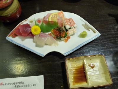 造り(造り5種盛 ボタンエビ、まぐろ、ホタテ、サーモン、ハマチ)